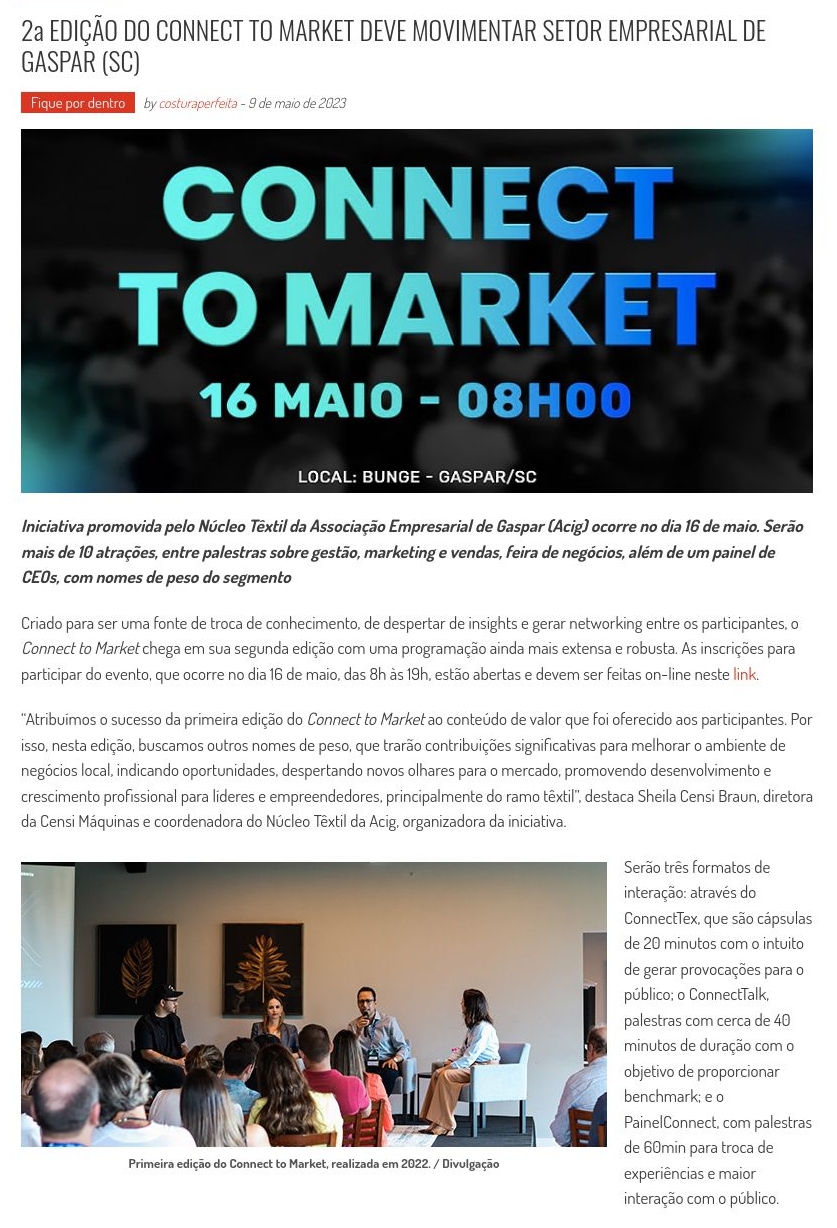 2a EDIÇÃO DO CONNECT TO MARKET DEVE MOVIMENTAR SETOR EMPRESARIAL DE GASPAR (SC) - Costura Perfeita