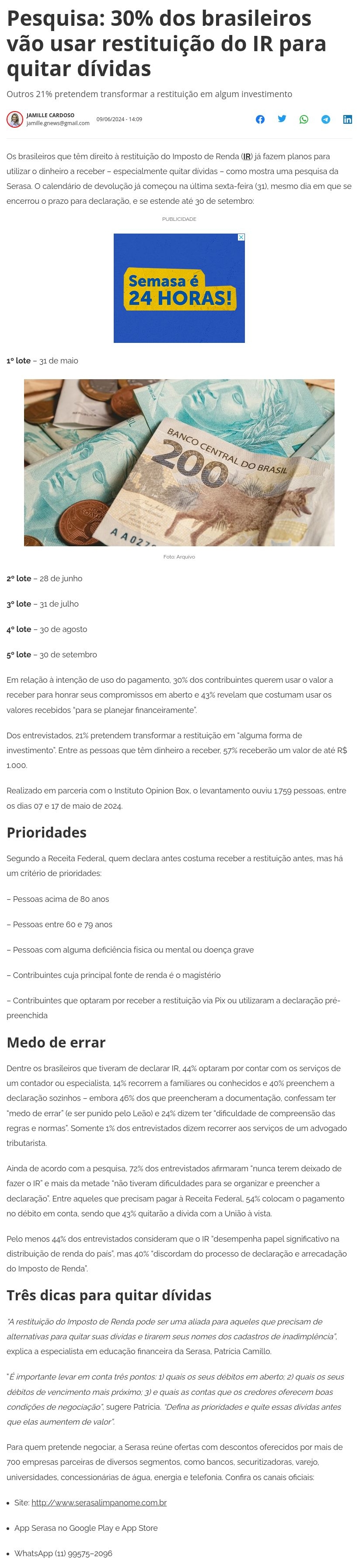 https://guararemanews.com.br/economia/pesquisa-30-dos-brasileiros-vao-usar-restituicao-do-ir-para-quitar-dividas