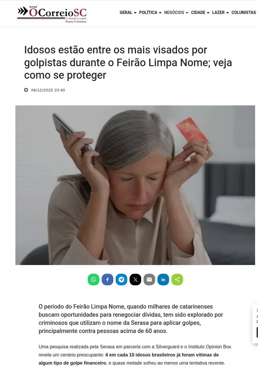 https://jornalocorreiosc.com.br/noticias/negocios/idosos-de-sc-estao-entre-os-mais-visados-por-golpistas-durante-o-feirao-limpa-nome-veja-como-se-proteger.15456852