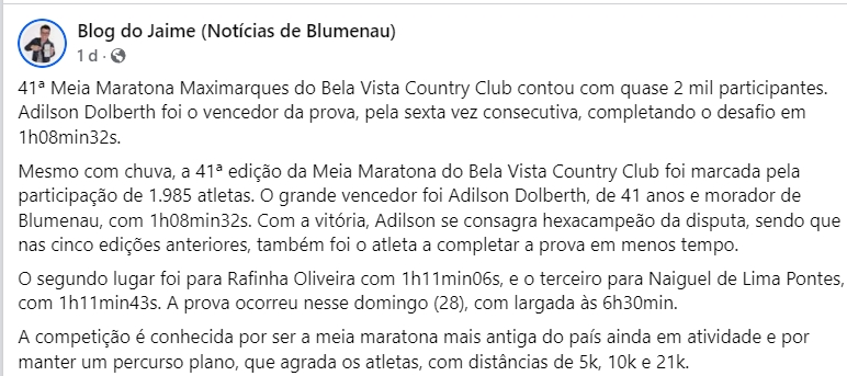 41ª Meia Maratona Maximarques do Bela Vista Country Club