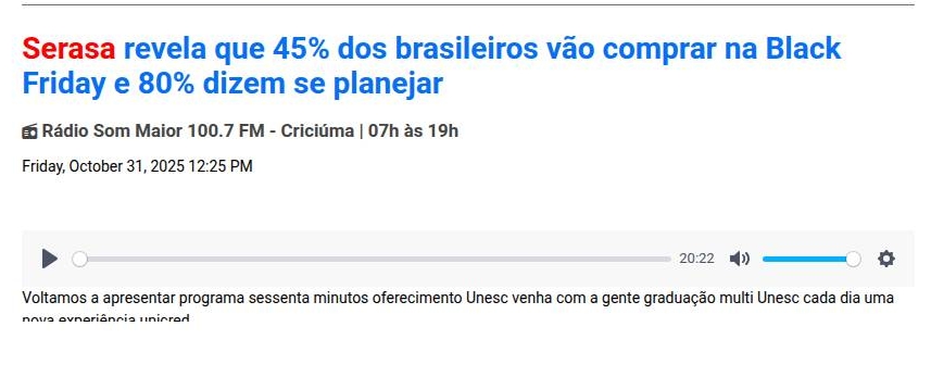 30/10/2025 - Rádio Som Maior 100,7 FM