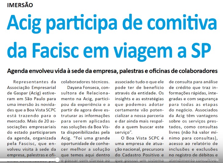 Acig participa de comitiva da Facisc em viagem a São Paulo