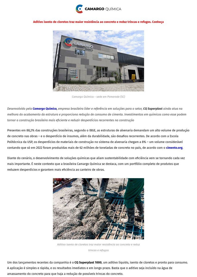 Aditivo isento de cloretos traz maior resistência ao concreto e reduz trincas e refugos. Conheça
