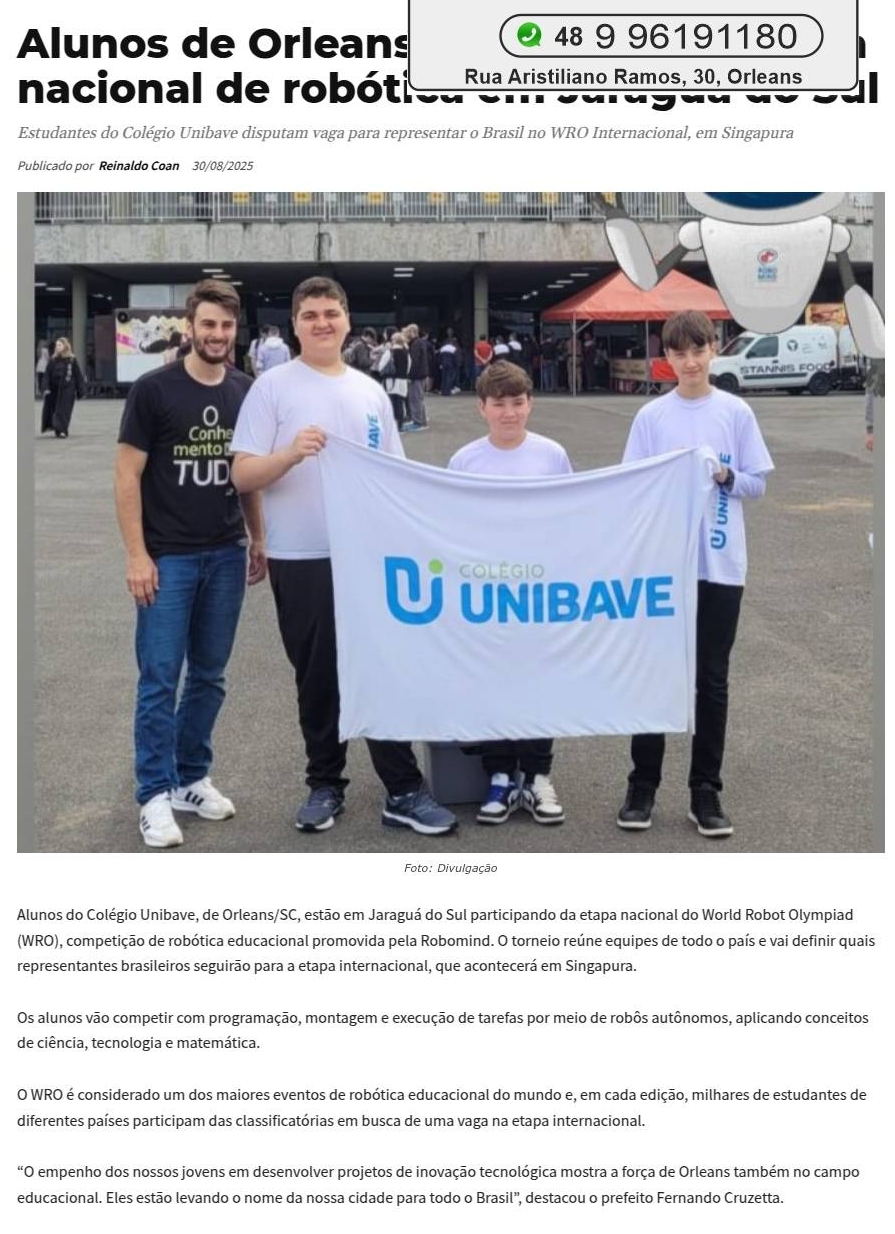Alunos de Orleans participam de etapa nacional de robótica em Jaraguá do Sul - Portal de Notícias do Sul do