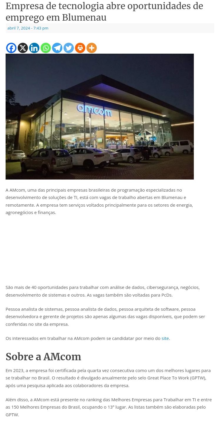 AMcom abre mais de 40 vagas de trabalho. Veja oportunidades