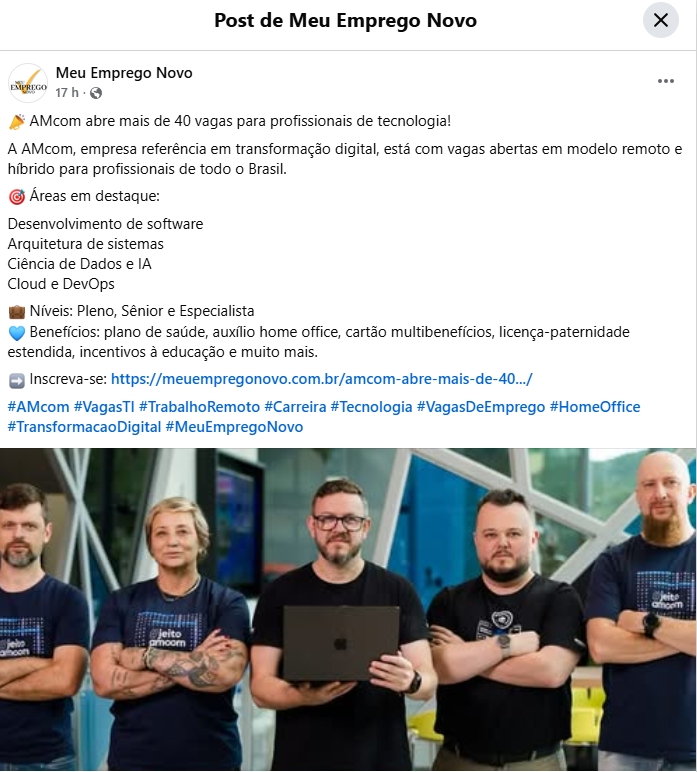 AMcom abre mais de 40 vagas na área de tecnologia