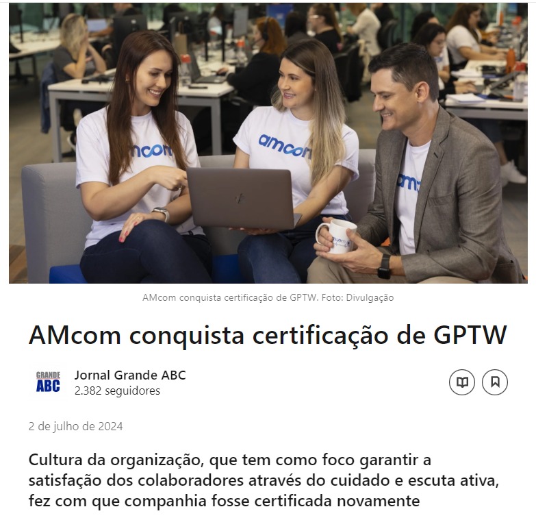 AMcom conquista certificação de melhor empresa para se trabalhar pelo quinto ano consecutivo