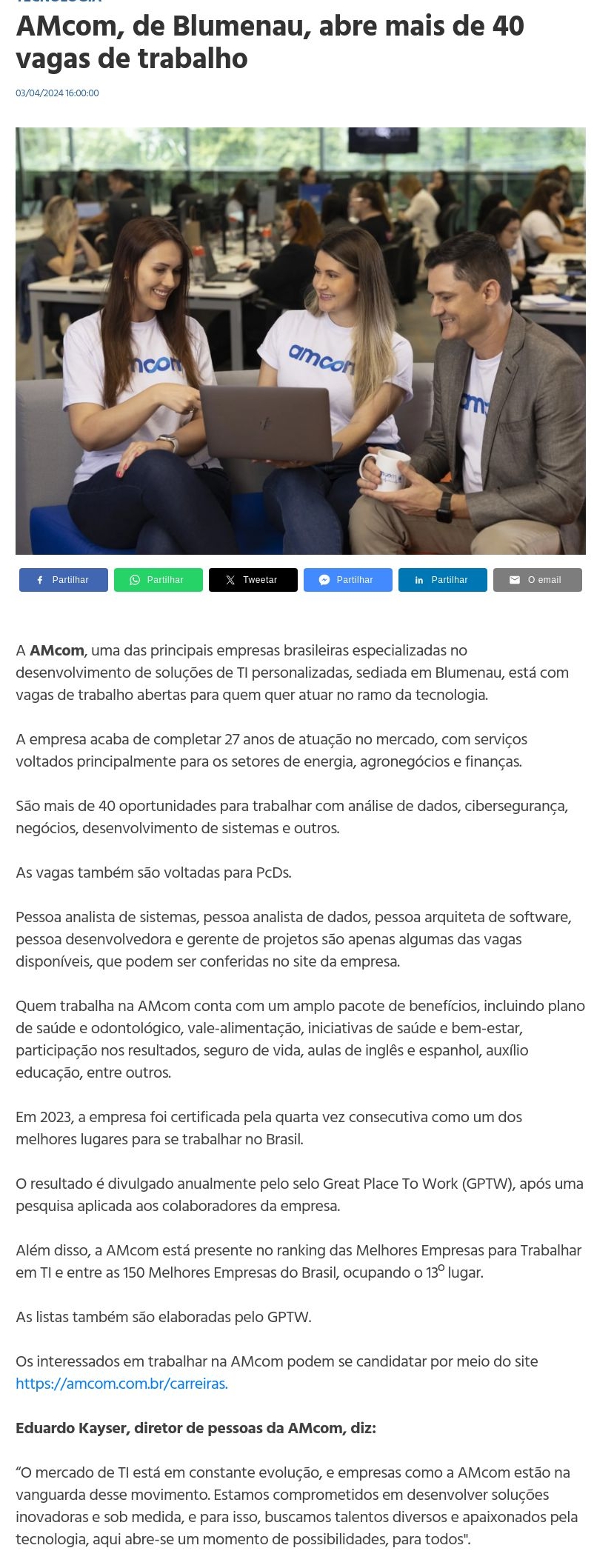 AMcom, de Blumenau, abre mais de 40 vagas de trabalho | Noticenter