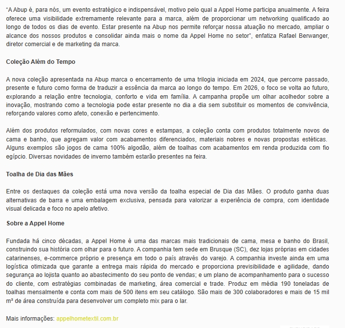 https://revistakdea360.com.br/noticia/45363/appel-home-apresenta-lancamentos-da-colecao-alem-do-tempo-na-abup-2026