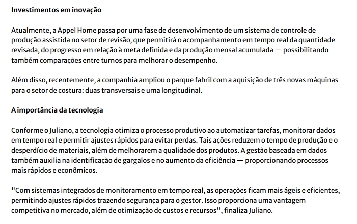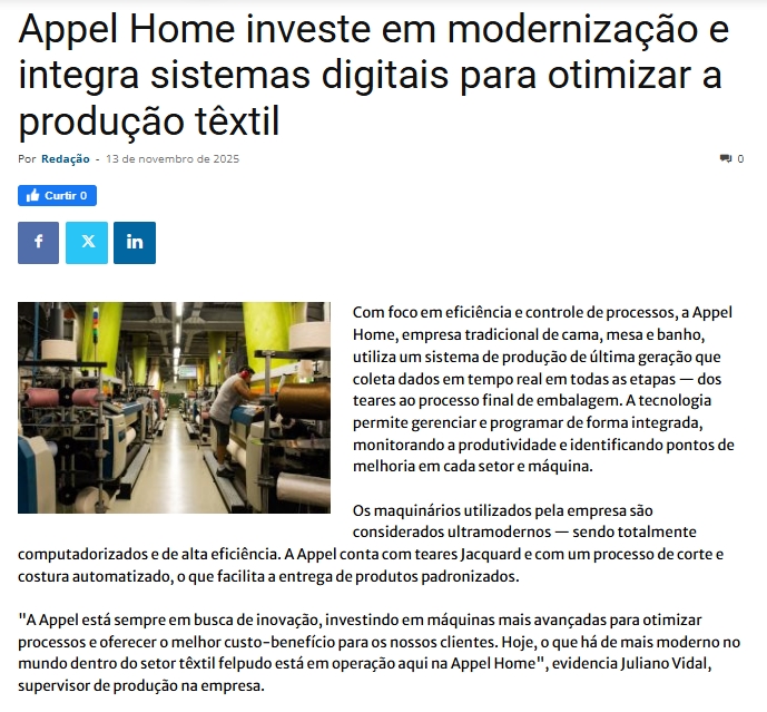 https://tiinside.com.br/13/11/2025/appel-home-investe-em-modernizacao-e-integra-sistemas-digitais-para-otimizar-a-producao-textil