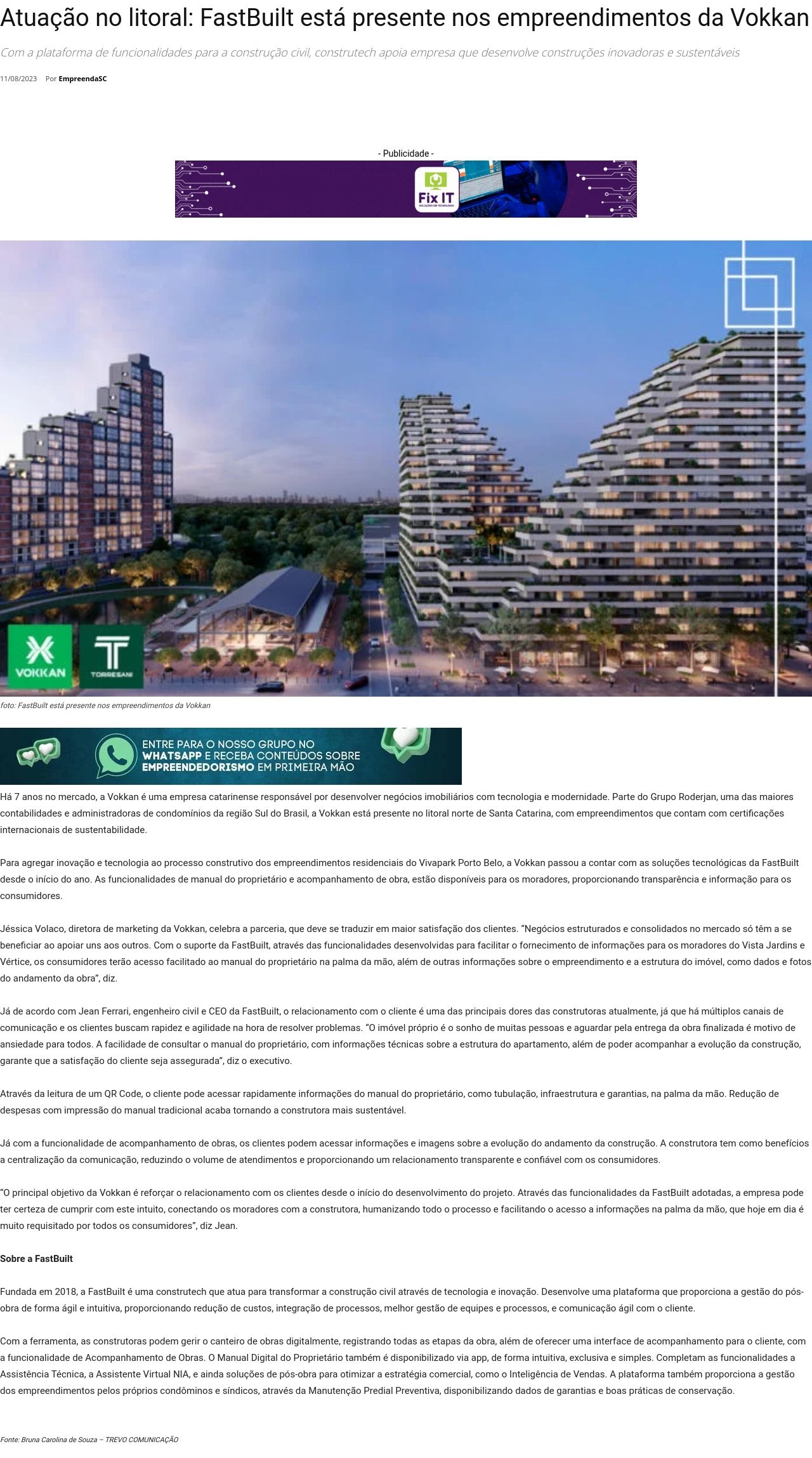 Atuação no litoral: FastBuilt está presente nos empreendimentos da Vokkan