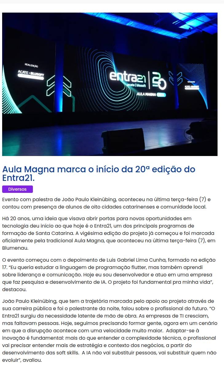 Aula Magna marca o início da 20ª edição do Entra21.