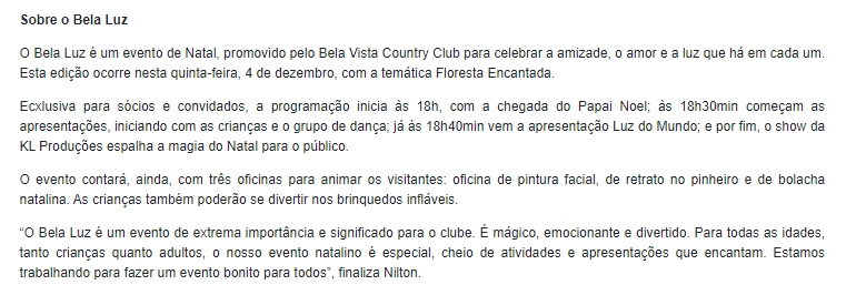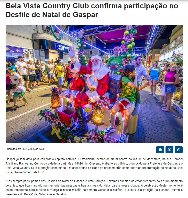 Bela Vista Country Club confirma participação no Desfile de Natal de Gaspar