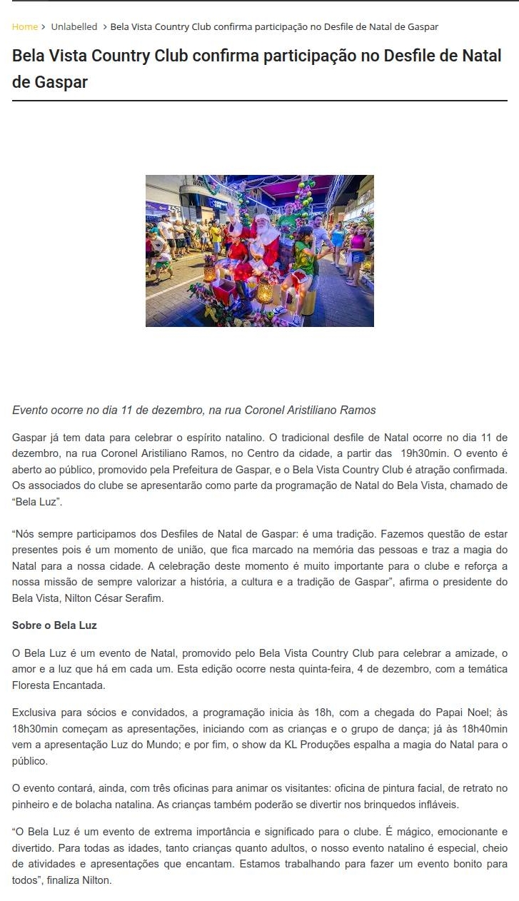 Bela Vista Country Club confirma participação no Desfile de Natal de Gaspar
