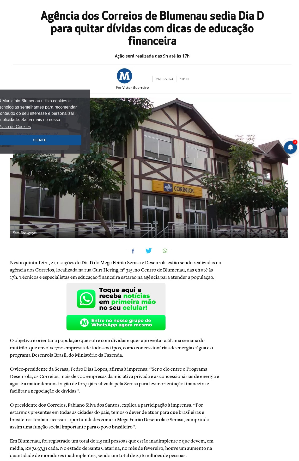 https://omunicipioblumenau.com.br/agencia-dos-correios-de-blumenau-sedia-dia-d-para-quitar-dividas-com-dicas-de-educacao-financeira