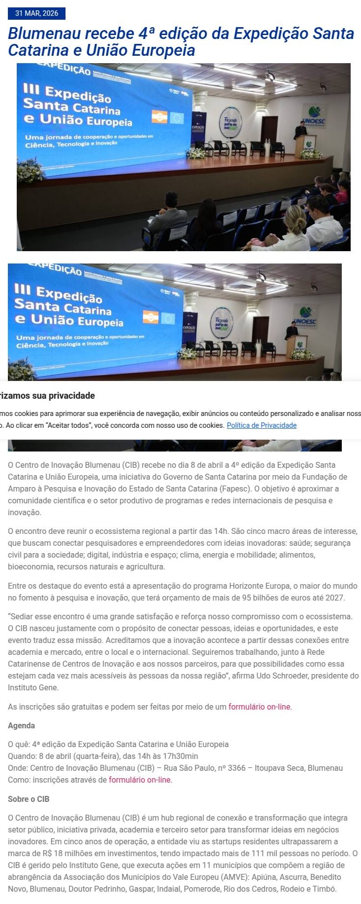 Blumenau recebe 4ª edição da Expedição Santa Catarina e União Europeia - TV Galega - O Mais Novo Portal de