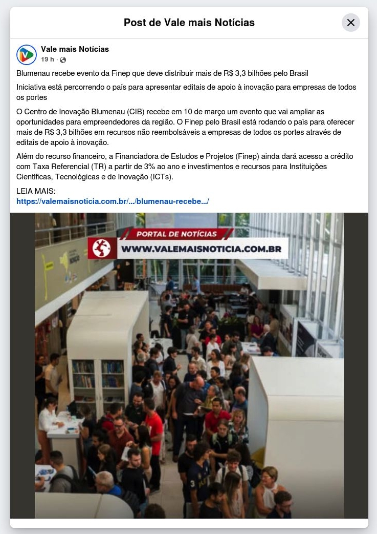 Blumenau recebe evento da Finep que deve distribuir mais de R$ 3,3 bilhões pelo Brasil