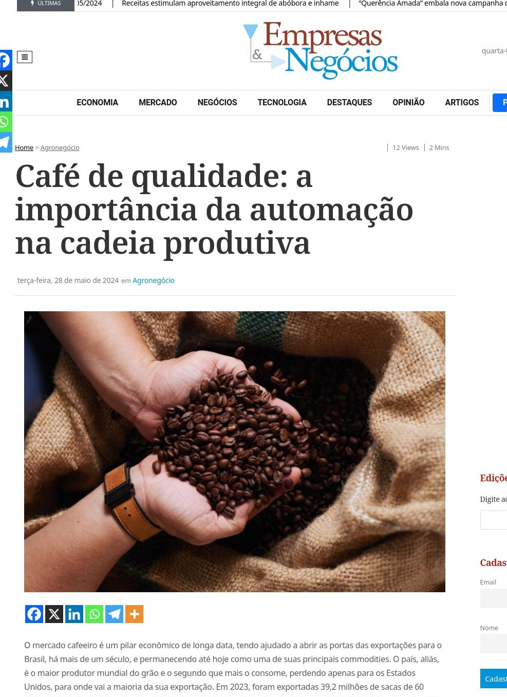 Café de qualidade: a importância da automação na cadeia produtiva Jornal Empresas & Negócios