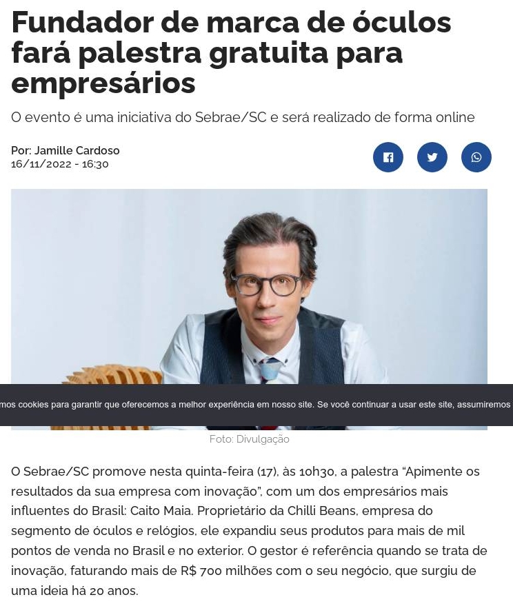 Caito Maia, fundador da Chilli Beans, fará palestra sobre criatividade e inovação