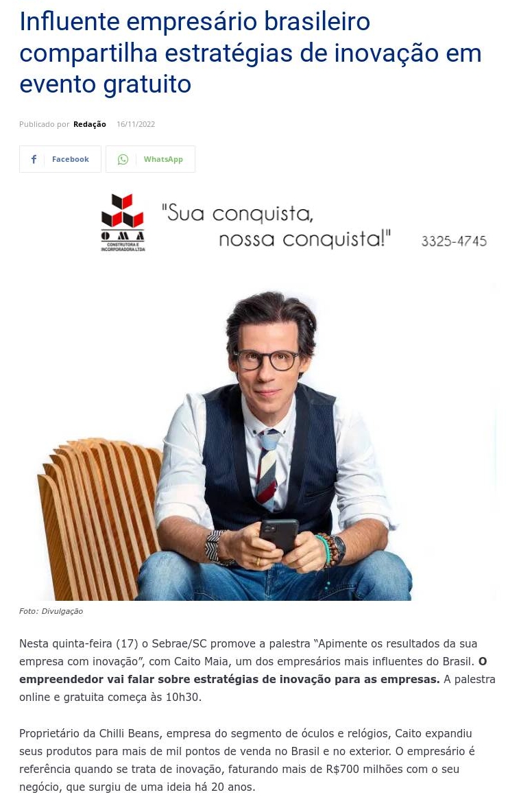 Caito Maia, fundador da Chilli Beans, fará palestra sobre criatividade e inovação
