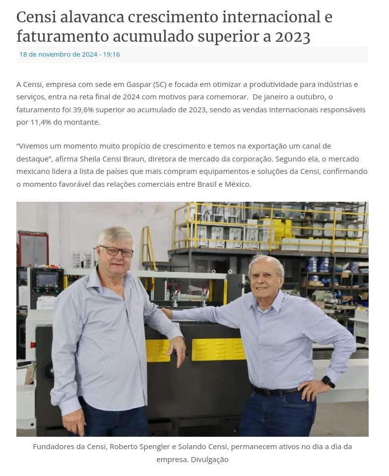 Censi alavanca crescimento internacional e faturamento acumulado superior a 2023