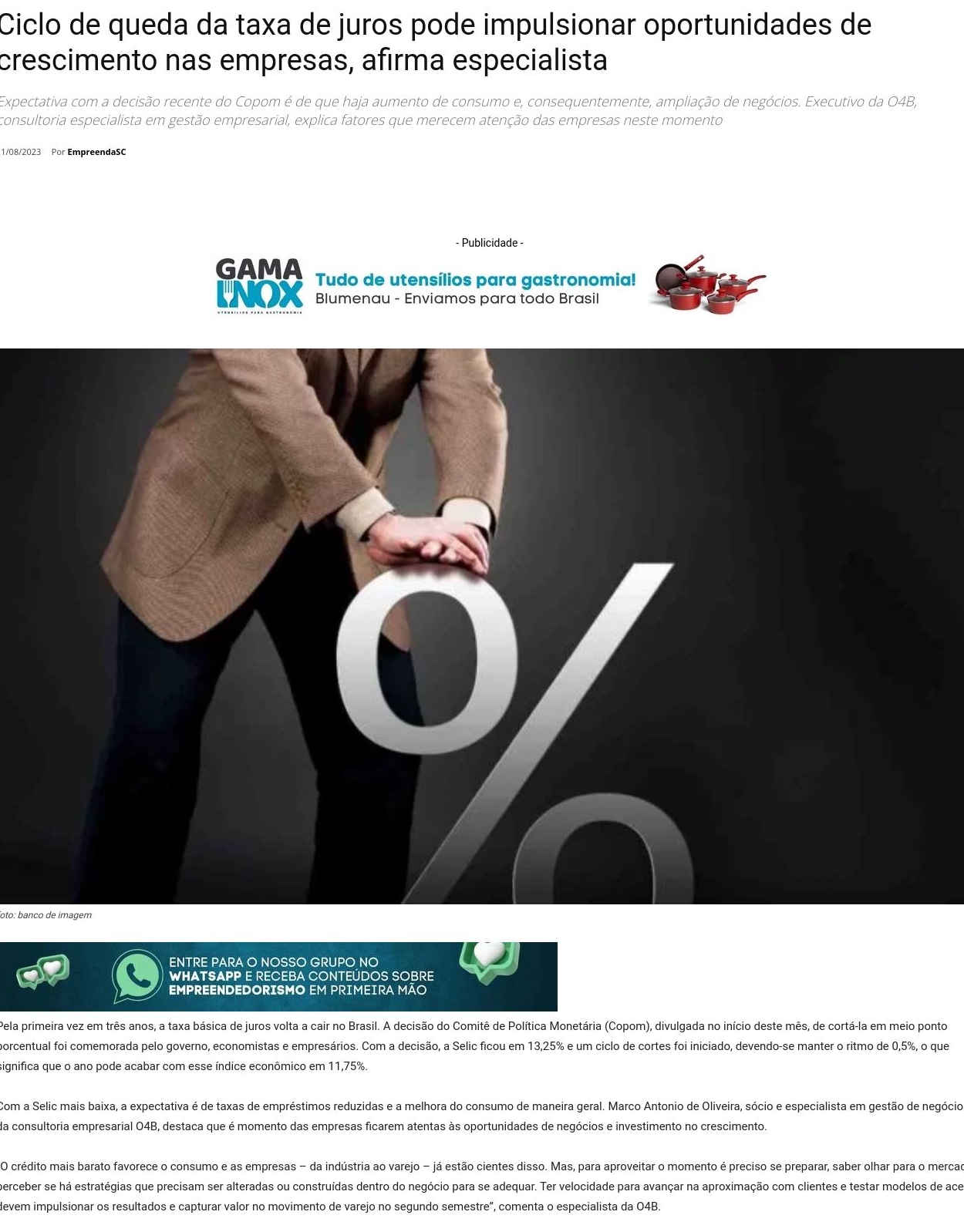 Ciclo de queda da taxa de juros pode impulsionar oportunidades de crescimento nas empresas, afirma especialista