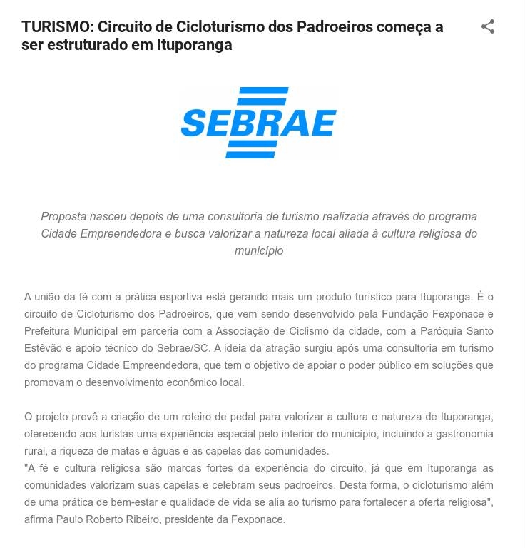 Circuito de Cicloturismo dos Padroeiros começa a ser estruturado em Ituporanga