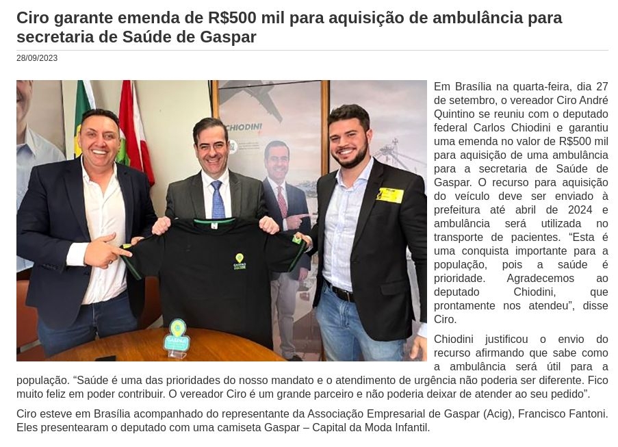 http://cruzeirodovale.com.br/politica/ciro-garante-emenda-de-r-500-mil-para-aquisicao-de-ambulancia-para-secretaria-de-saude-de-gaspar
