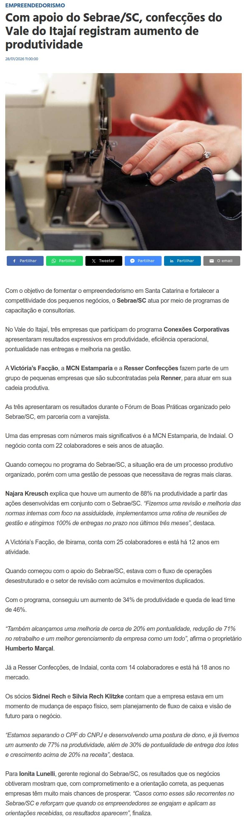 Com apoio do Sebrae/SC, confecções do Vale do Itajaí registram aumento de produtividade Jornal de Blumenau