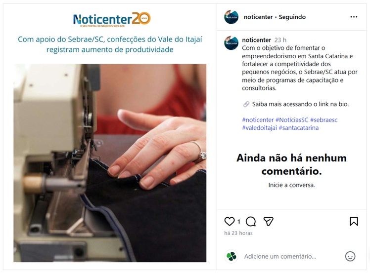 Com apoio do Sebrae/SC, confecções do Vale do Itajaí registram aumento de produtividade