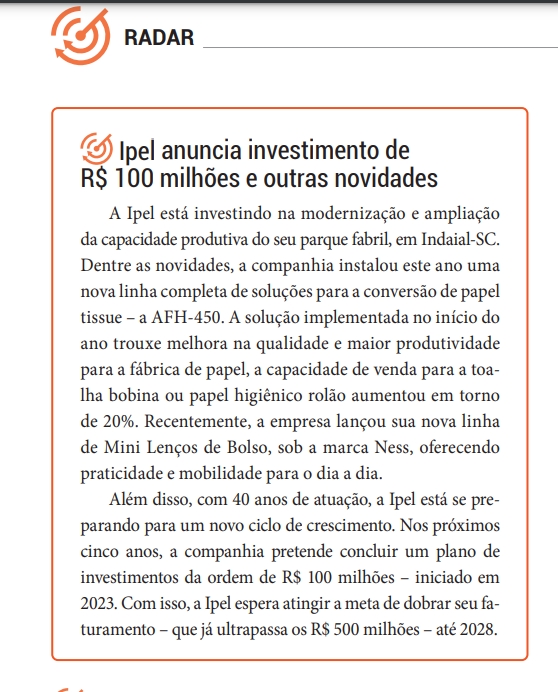 Com nova frente de automação, Ipel amplia em 20% sua capacidade produtiva