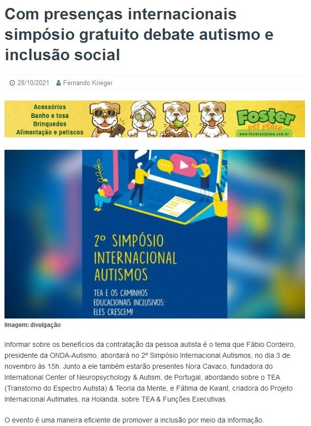 Com presenças internacionais simpósio gratuito debate sobre autismo e inclusão social