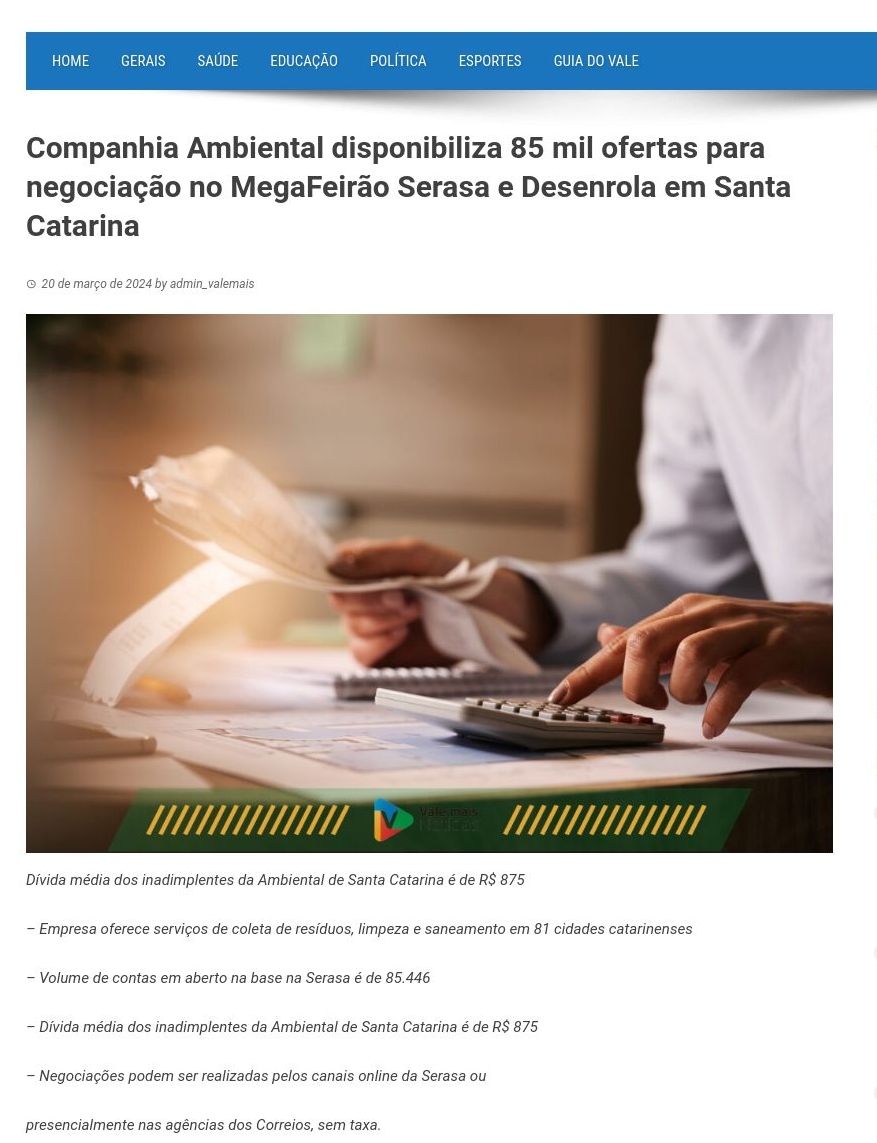 https://valemaisnoticia.com.br/2024/03/20/companhia-ambiental-disponibiliza-85-mil-ofertas-para-negociacao-no-megafeirao-serasa-e-desenrola-em-santa-catarina