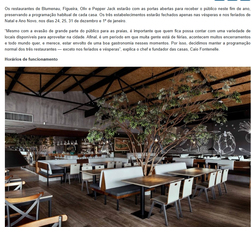 Confira como será o funcionamento de restaurantes de Blumenau neste fim de ano