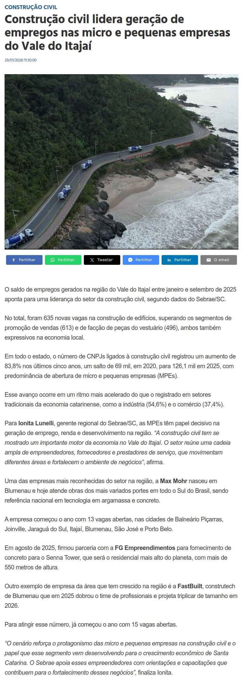 Construção civil lidera geração de empregos nas micro e pequenas empresas do Vale do Itajaí Jornal de Blumenau
