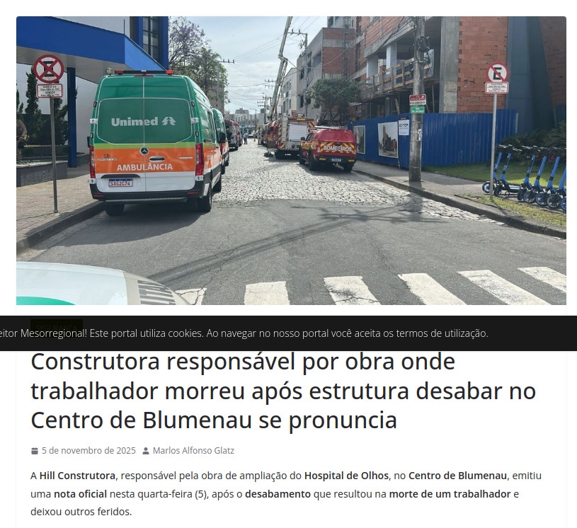 Construtora responsável por obra onde trabalhador morreu após estrutura desabar no Centro de Blumenau se pronuncia - Mesorregional