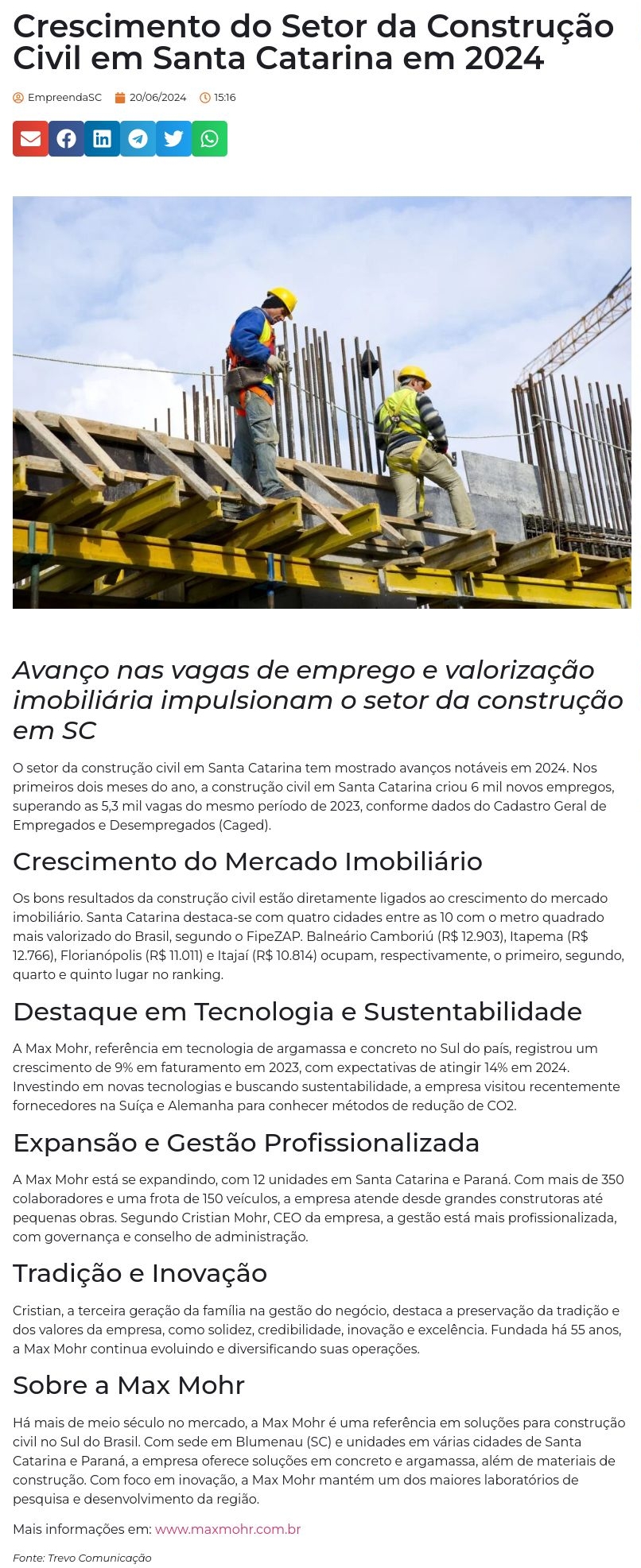 Crescimento do Setor da Construção Civil em Santa Catarina em 2024