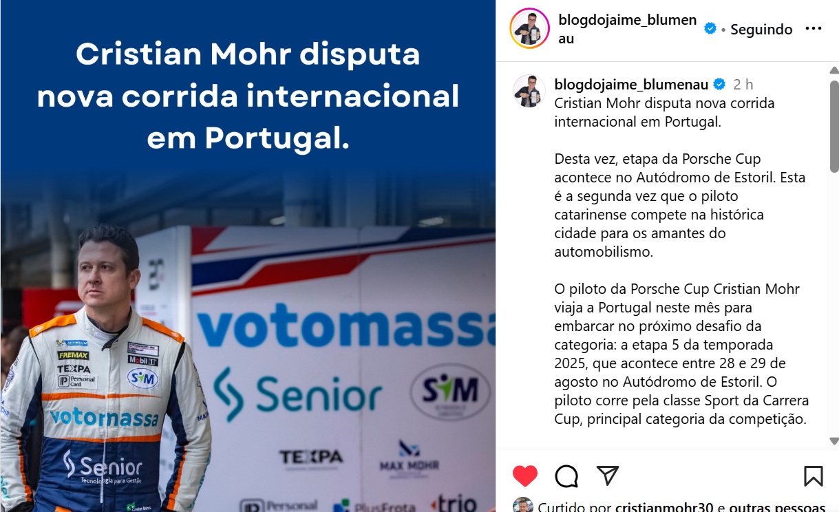Cristian Mohr disputa nova corrida internacional em Portugal
