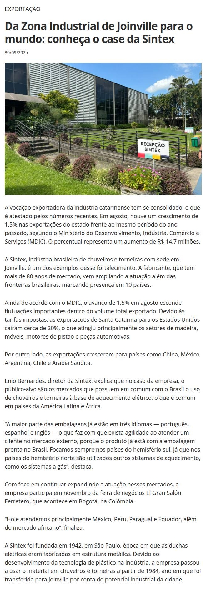 Da Zona Industrial de Joinville para o mundo: conheça o case da Sintex