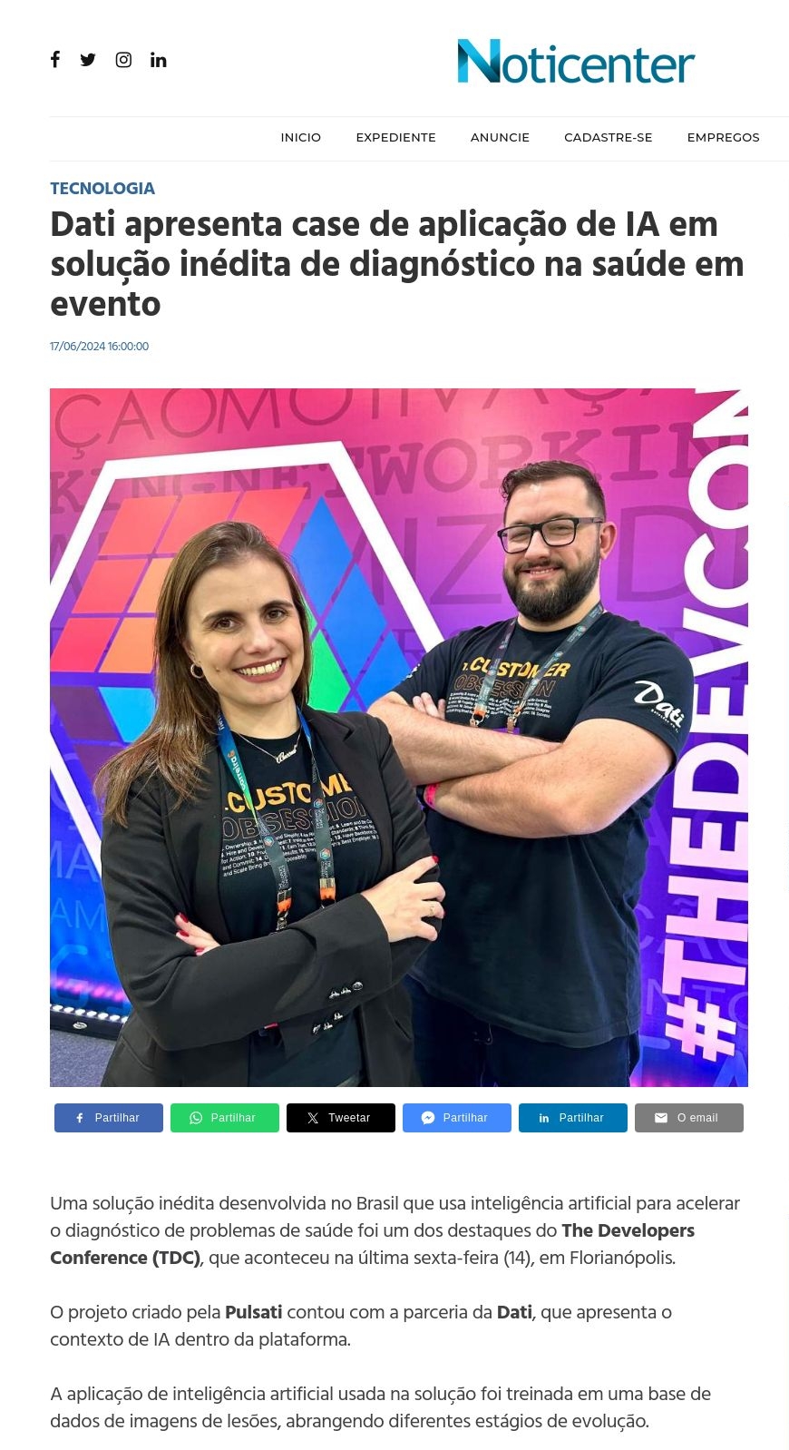 Dati apresenta case de aplicação de IA em solução inédita de diagnóstico na saúde em evento Noticenter