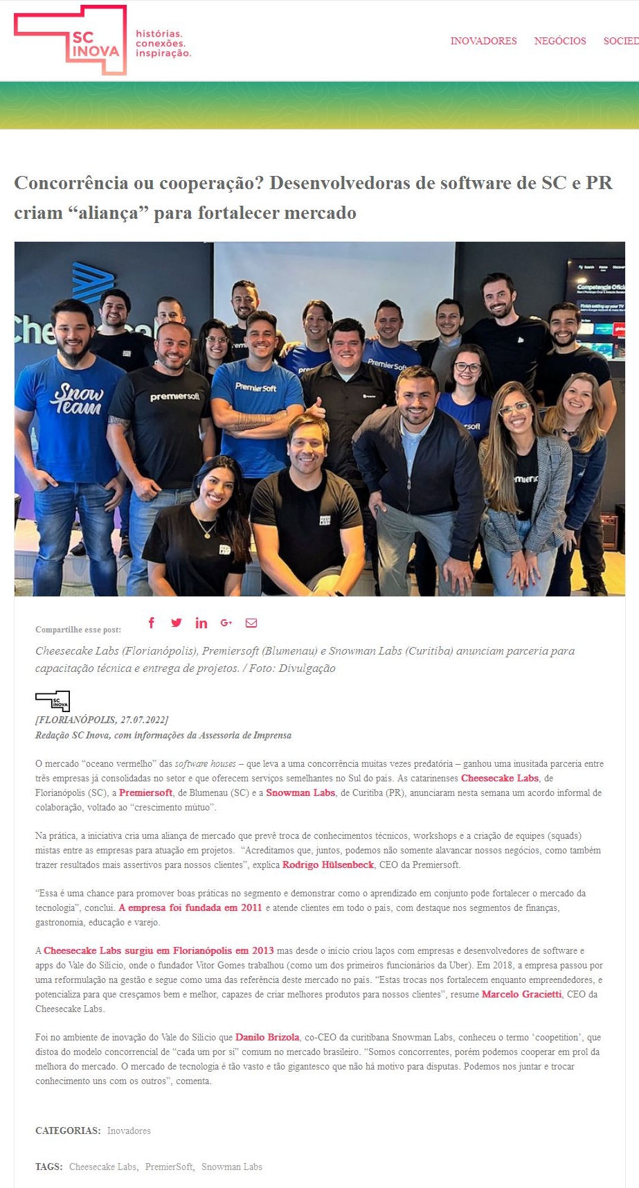 De concorrentes a parceiros: Premiersoft, Cheesecake Labs e Snowman Labs criam uma aliança