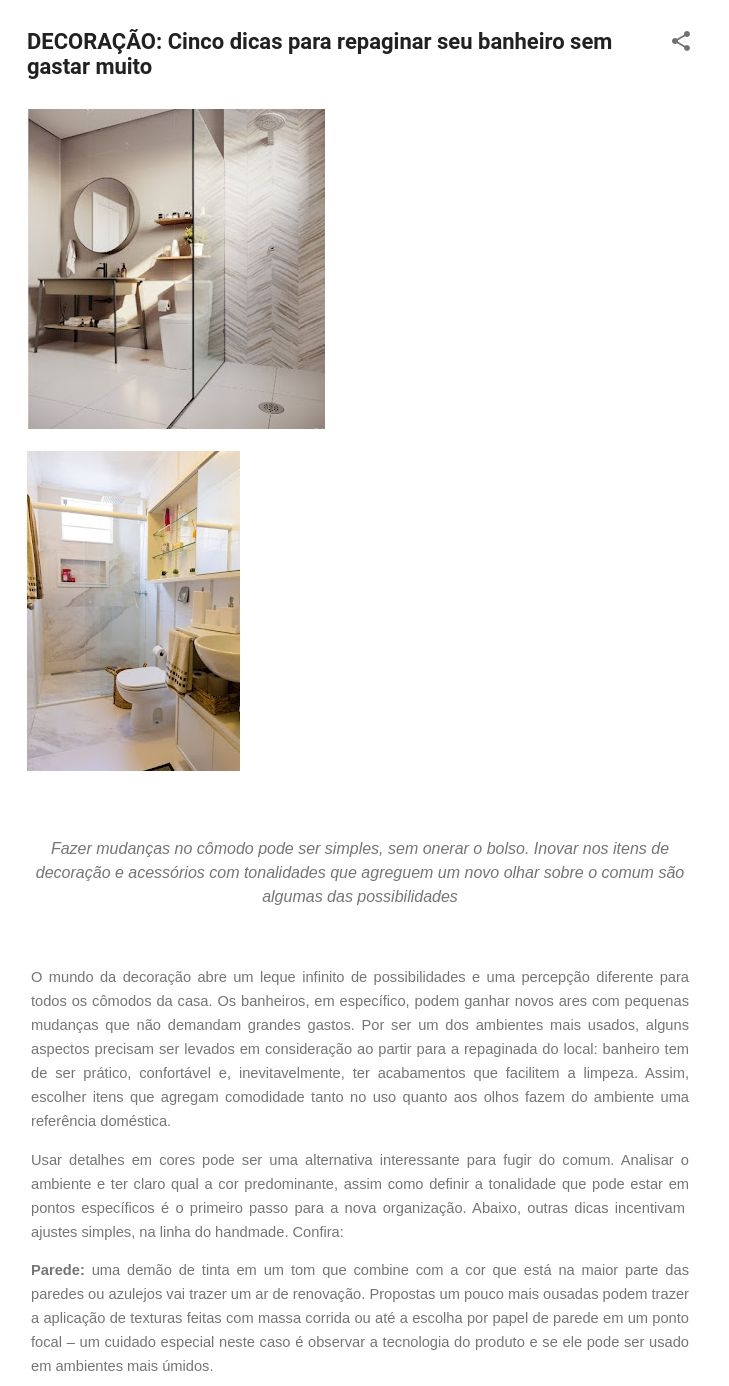 DECORAÇÃO: Cinco dicas para repaginar seu banheiro sem gastar muito
