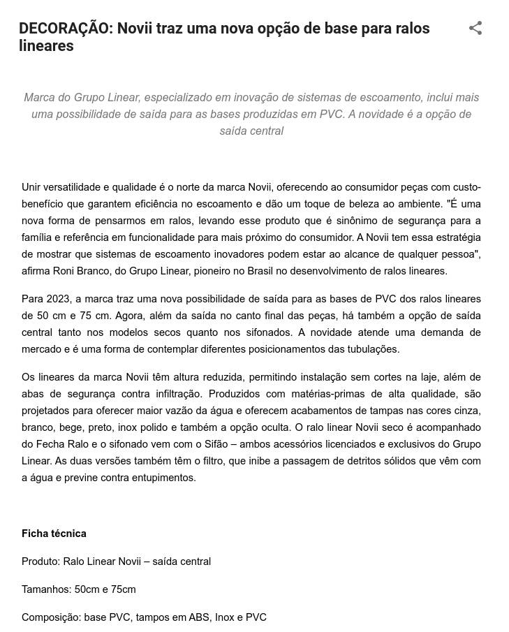 DECORAÇÃO: Novii traz uma nova opção de base para ralos lineares