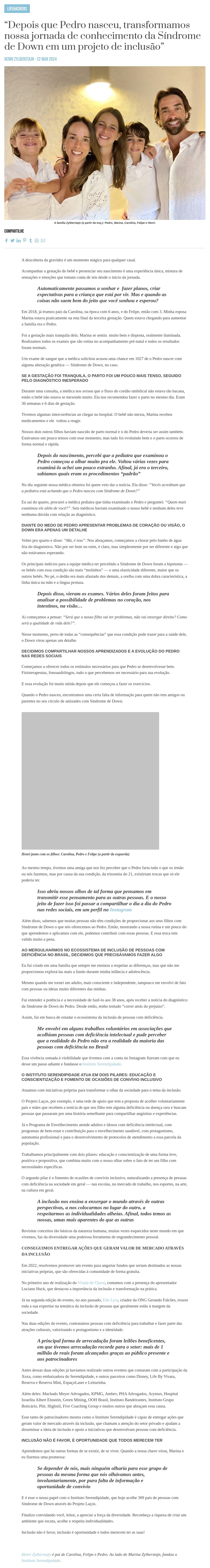 "Depois que Pedro nasceu, transformamos nossa jornada de conhecimento da Síndrome de Down em um projeto de inclusão"
