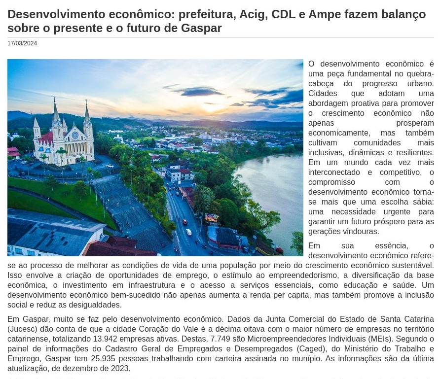 Desenvolvimento econômico: prefeitura, Acig, CDL e Ampe fazem balanço sobre o presente e o futuro de Gaspar - Jornal Cruzeiro do Vale