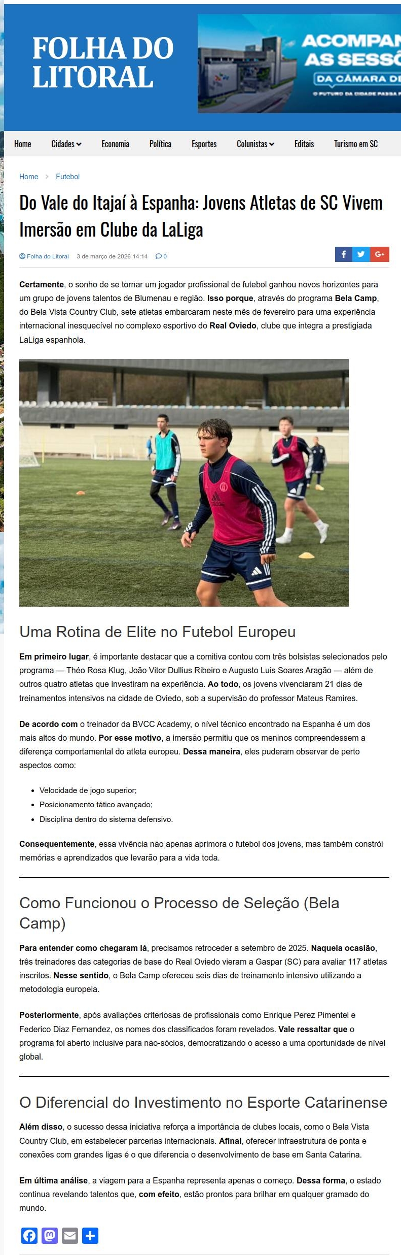 Do Vale do Itajaí à Espanha: Jovens Atletas de SC Vivem Imersão em Clube da LaLiga - Jornal Folha do Litoral
