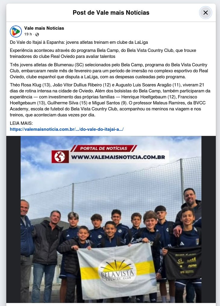 Do Vale do Itajaí à Espanha: jovens atletas treinam em clube da LaLiga