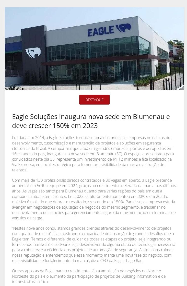 Eagle Soluções inaugura nova sede em Blumenau e deve crescer 150% em 2023 | Revista Segurança Eletrônica