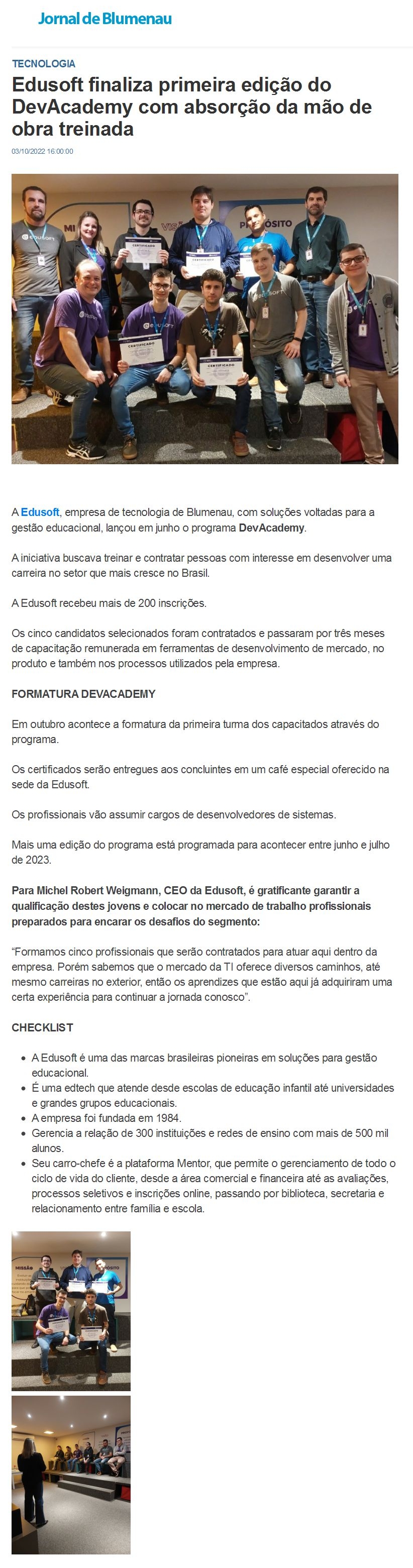 https://www.jornaldeblumenau.com.br/n.php?ID=31751&T=edusoft-finaliza-primeira-edicao-do-devacademy-com-absorcao-da-mao-de-obra-treinada