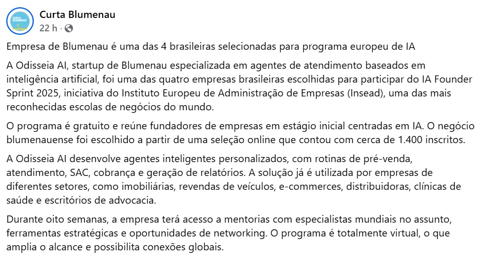 Empresa de Blumenau é uma das 4 brasileiras selec